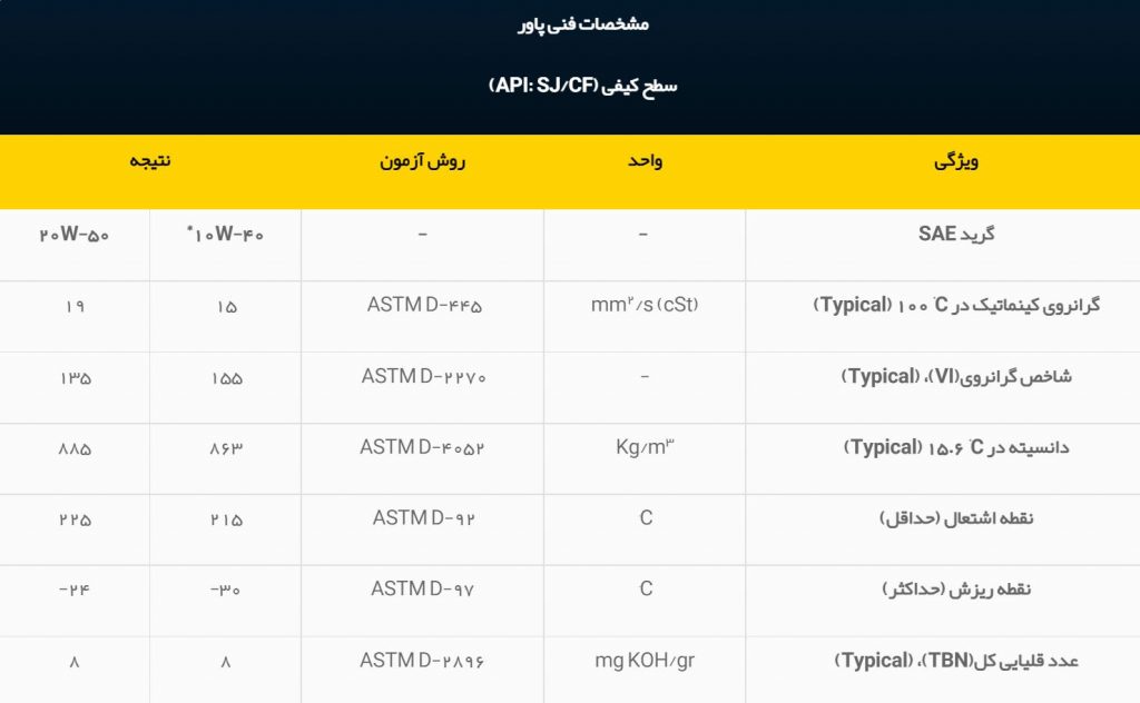 روغن موتور پاور با استفاده از مواد افزودنی معتبر و روغن پایه مرغوب، در شرکت نفت سپاهان فرموله و تولید گردیده است. این روغن برای خودروهای سواری بنزینی، گازسوز، دیزلی سبک و انواع موتورهایی که برای آنها روغنی با سطح کاراییAPI SJ/CF توصیه شده است کاربرد دارد. فرمولاسیون این روغن به گونه ای است که ضمن حفظ گرانروی روغن و تشکیل فیلم پایدار بر روی قطعات موتور، از آن در برابر صدمات ناشی از خوردگی، زنگ زدگی و سایش محافظت می نماید. روغن موتور پاور در کلیه فصول سال و در هر شرایط آب و هوایی قابلیت کارکرد مطلوب را دارا می باشد. این محصول با روغن پایه نیمه سنتزی تولید می گردد.